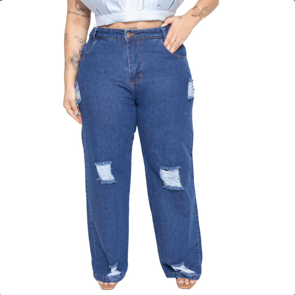 Calça Jeans Feminina Wide Leg Plus Size Levanta Bumbum