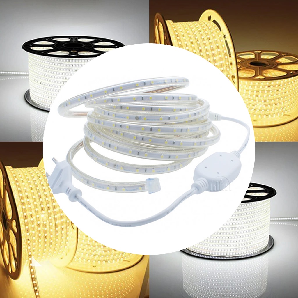 1 a 10 Metros Fita Mangueira Led 5050 Branco Frio/Quente 220v de + Fonte de Alimentação/Rabicho