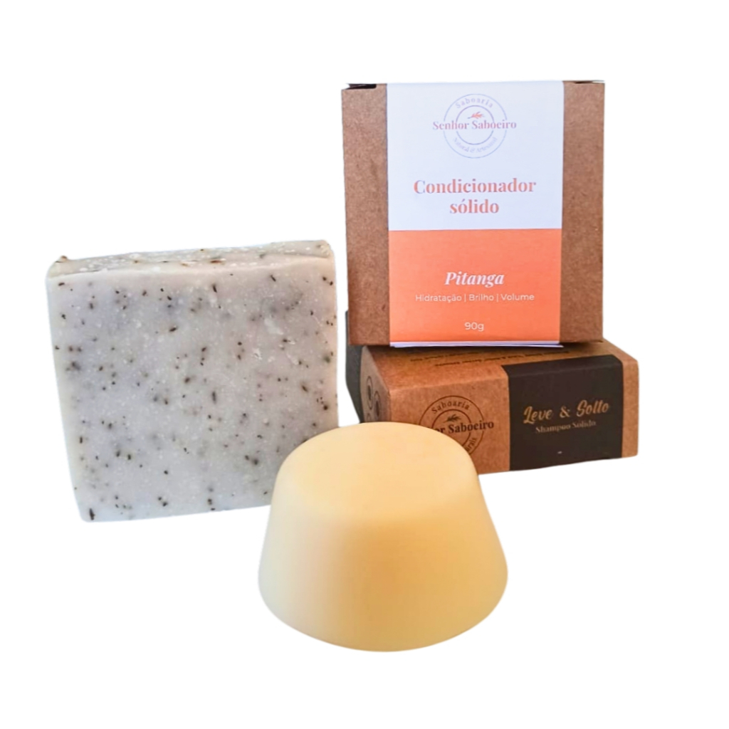 Kit Shampoo Sólido Aloe Vera e Condicionador Pitanga - Anti Queda Hidratação Intensa Cabelos Secos