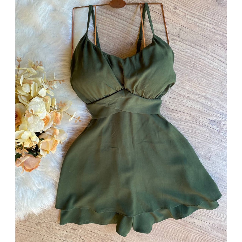 macaquinho jeans com amarração alças finas azul claro
