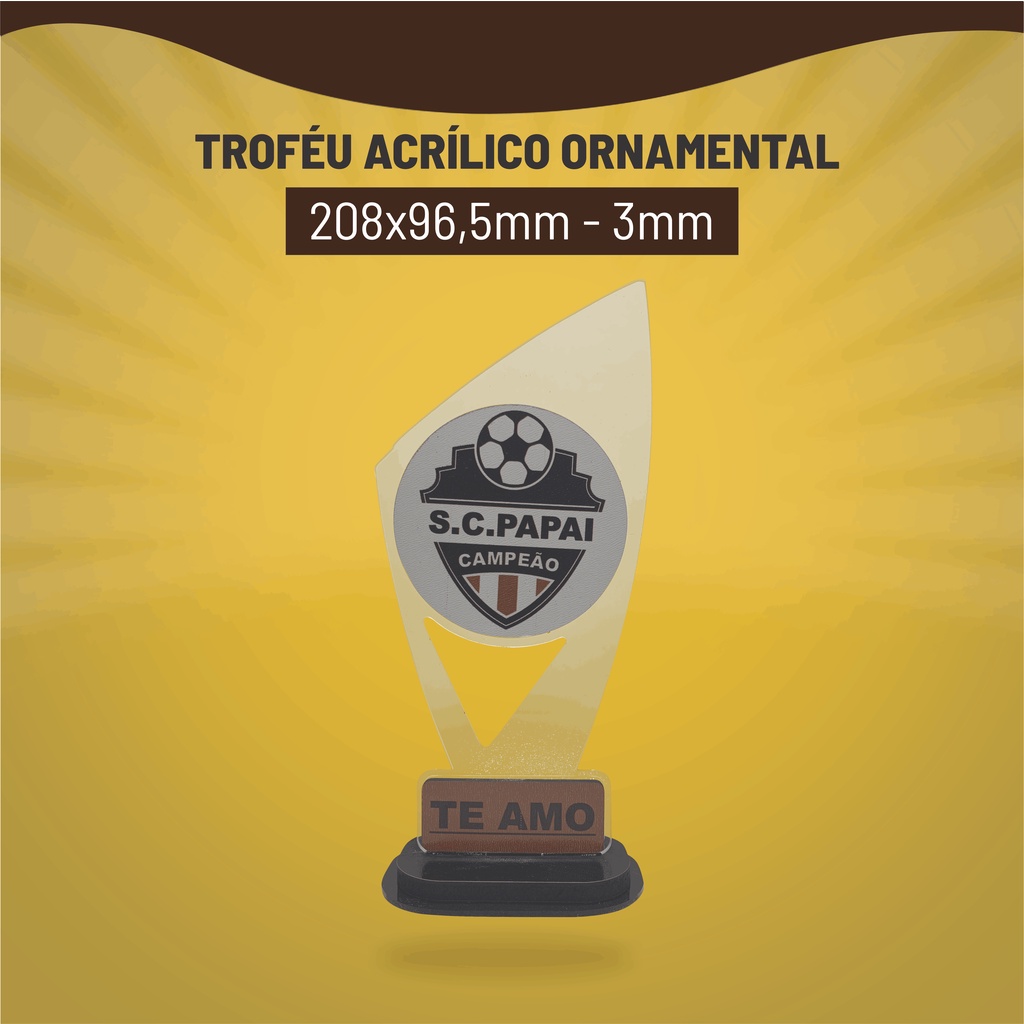 TROFEU ACRILICO TRANSPARENTE 3MM ORNANENTAL 208x96 APLIQUE MDF 3MM