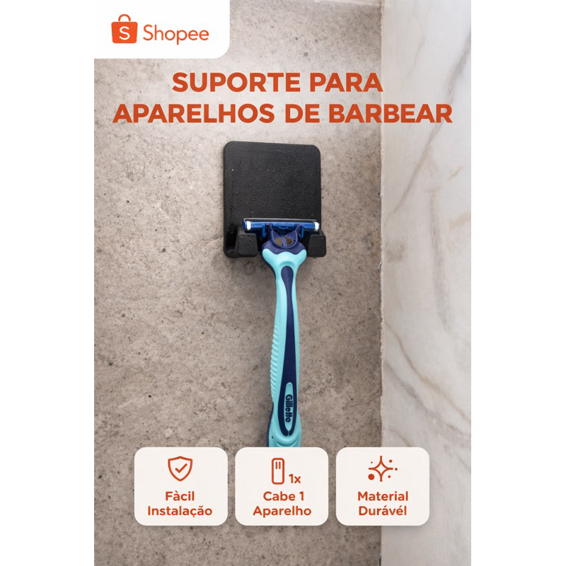 Kit Suporte de Barbear Adesivo | Suporte para Aparelho de Barbear | Gancho de Barbear | Acessório de Banheiro