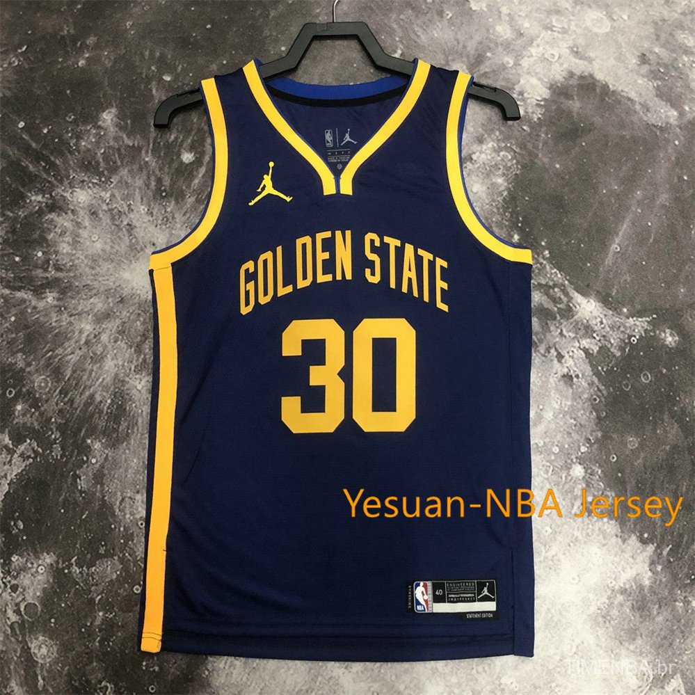 Hot pressed Camisa Golden State Warriors #30 Stephen Curry Masculina NBA Jersey azul marinho De Basquete Sponsorship logo