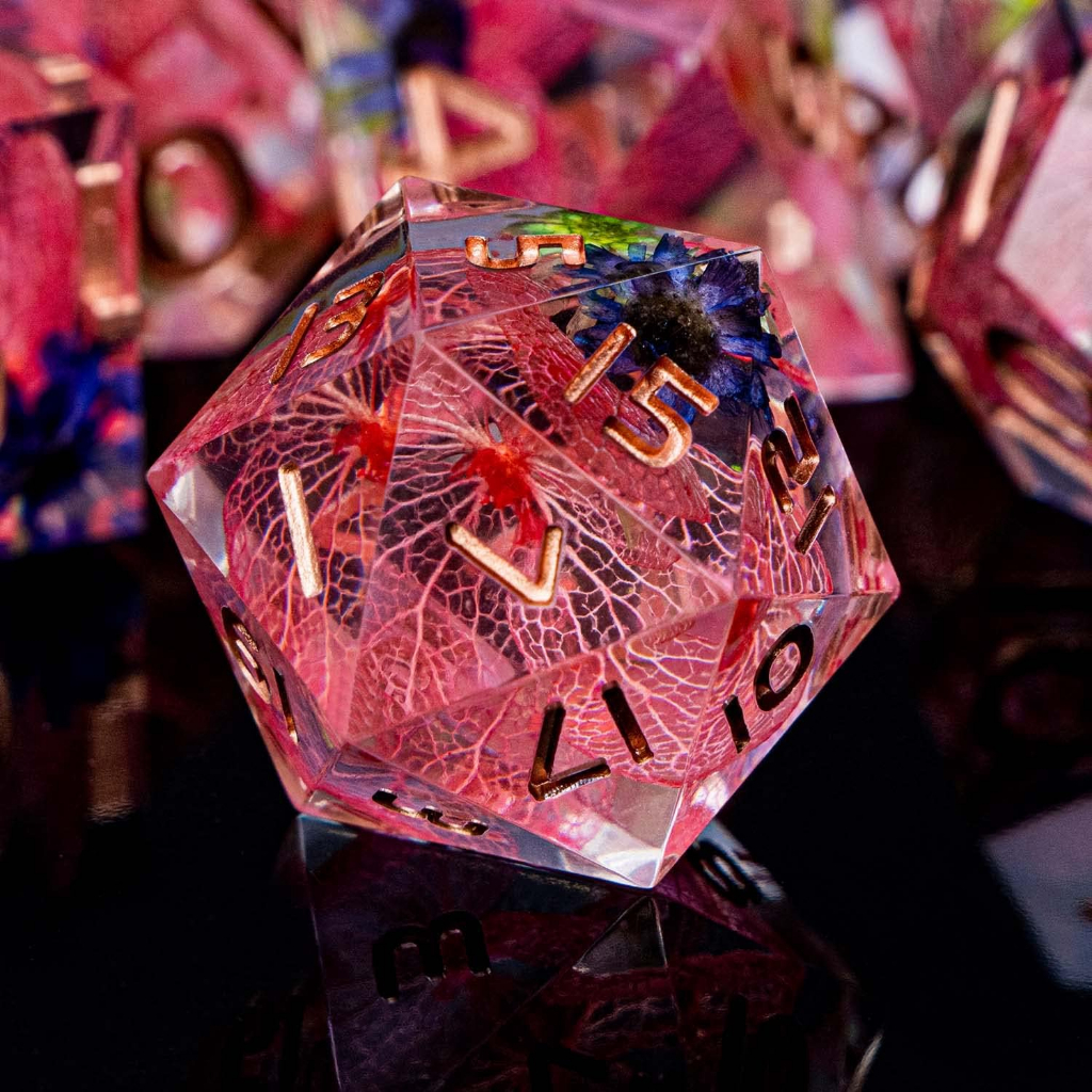 Conjunto Completo De Dados De Resina Dnd Sharp Edge Feito À Mão 6 Lados RPG Poliédrico D E Flower Para Dungeon Dragon Pathfinder Jogos De Tabuleiro D20 D12 D10 D8 D6 D4