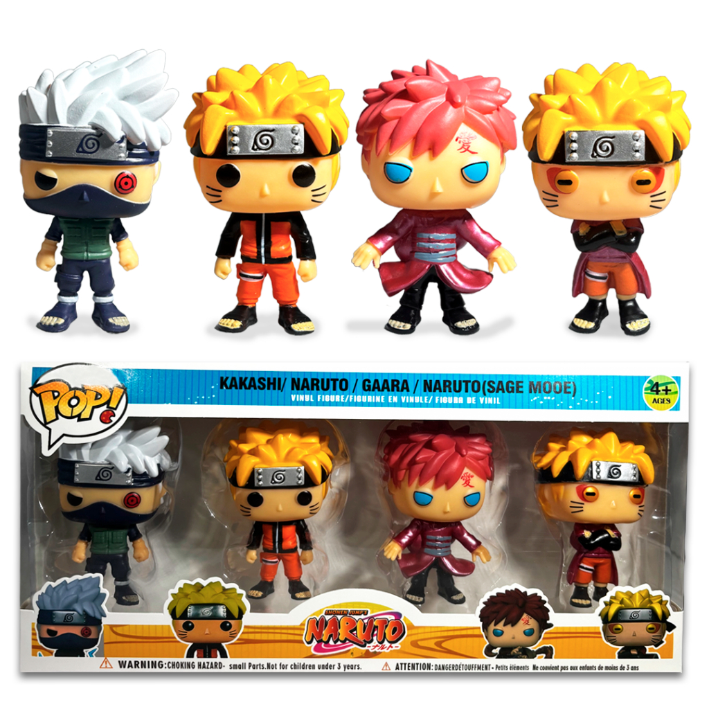kit Bonecos Pop Naruto Coleção Figura Anime 4 Em 1 Naruto Kakashi Gaara Sage Baryon Mode Vinil