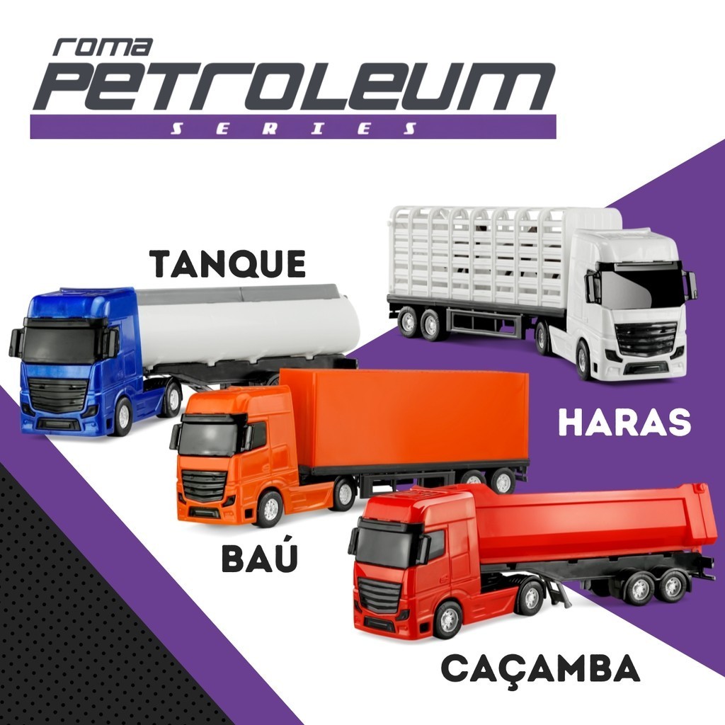 Kit 4 Caminhão Miniatura Petroleum Series Brinquedo Colecionável - Roma Brinquedo