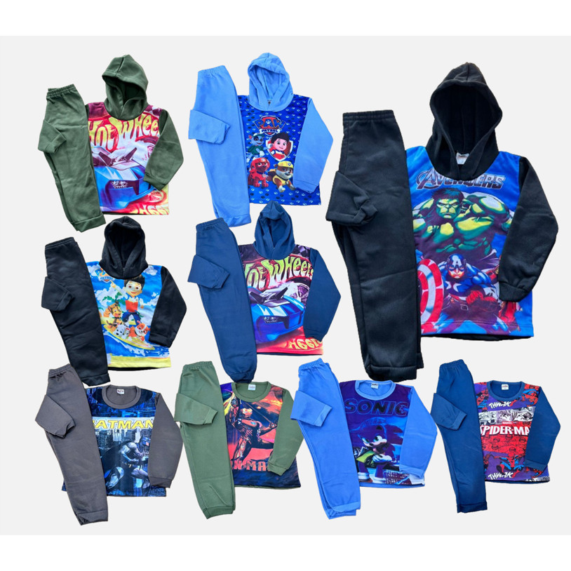 Kits com 02 Conjuntos de moletom infantil de personagens masculino 4 peças = 2 moletons(1 C/Capuz e 1 S/Capuz) + 2 calças Moletom Infantil Grosso Kit Combo Desenho Personagem Patrulha Heroi Desenho Infantil Moletom com felpa Casaco Blusa Quente Canina