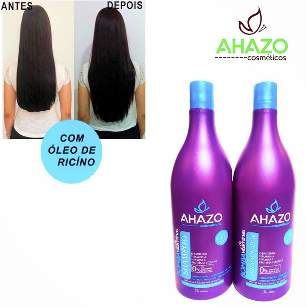 Kit shampoo e condicionador Bomba de vitaminas 1L e Máscara 500g crescimento e hidratação Ahazo