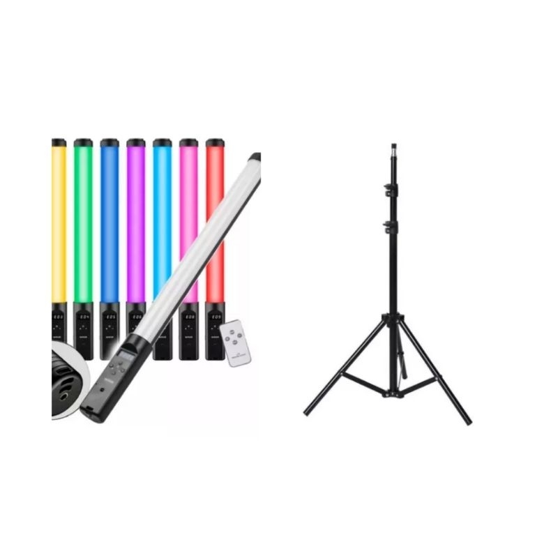 Bastão De Led Fotografia Colorido Rbg Light Stick Portatil Com Controle + Tripe 2 Metros