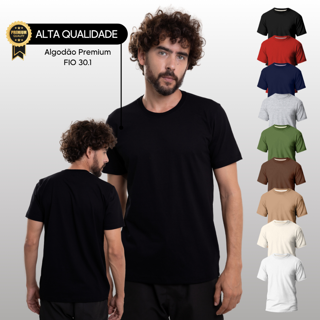 Kit 5 Camiseta Masculina Lisa 100% Algodão Fio 30.1 Básica Casual Silk Sublimação Revenda Promoção
