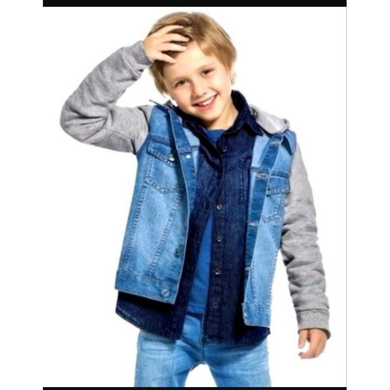 Jaqueta Jeans Com Moletom E Capuz Infantil E Juvenil. Flanelada nas mangas e Capuz. São bem quentinhas .