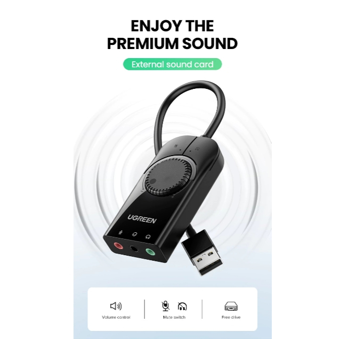 Placa De Som UGREEN USB A 3.5mm Interface De Áudio Externa De 3.5mm Microfone Adaptador Para PC Portátil PS4 Fone Ouvido