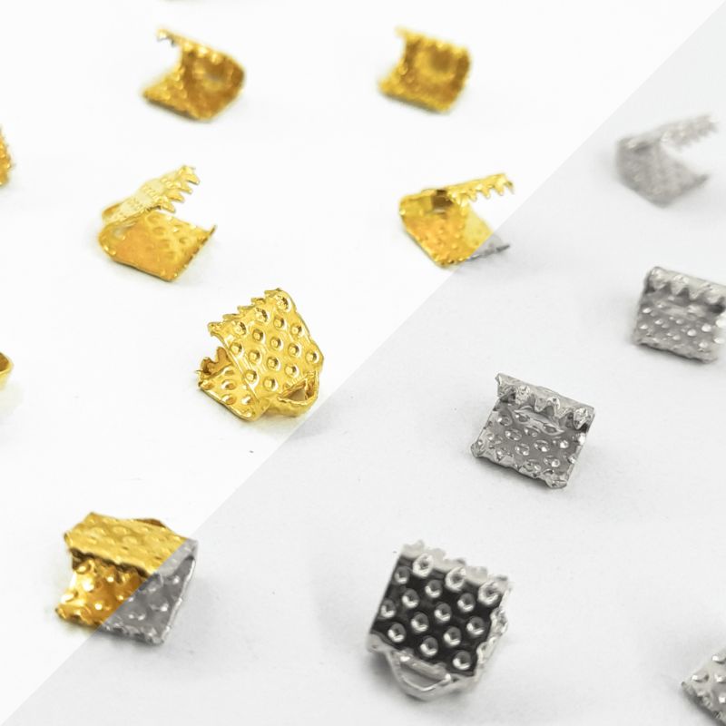 15 Unidades Terminal Jacaré Para Couro Para Bijuteria em Metal cor Dourado 6mm x 6mm