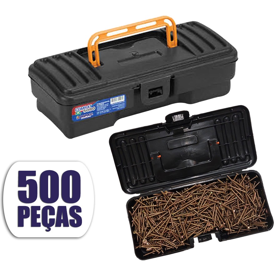 Kit 500 Parafusos Chipboard Marcenaria + Maleta organizadora