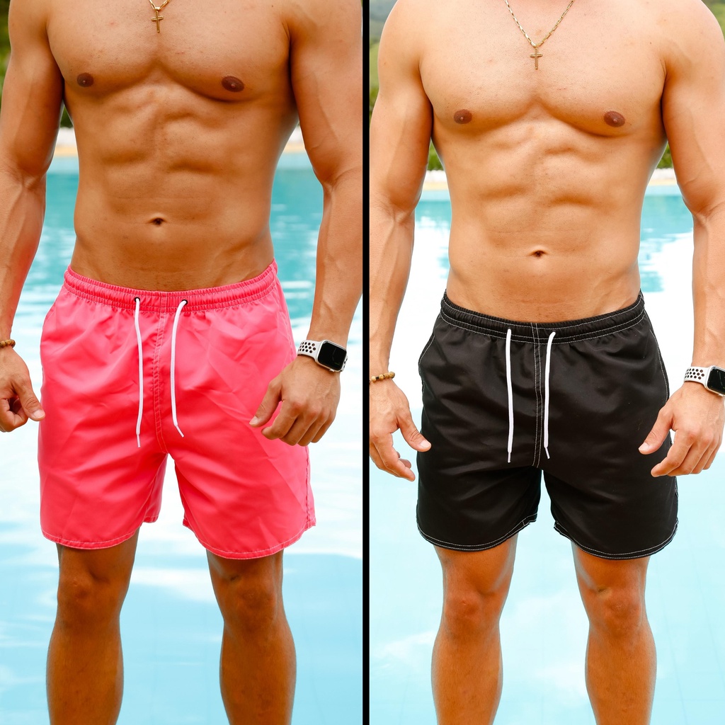 Kit 2 Shorts Resina Bermuda Praia Tactel Liso Masculino Mauricinho