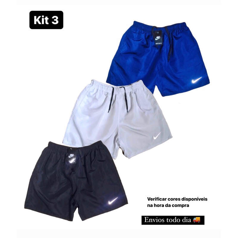 KIT 3 shorts Mauricinho, tactel, treino , praia, símbolo refletivo.