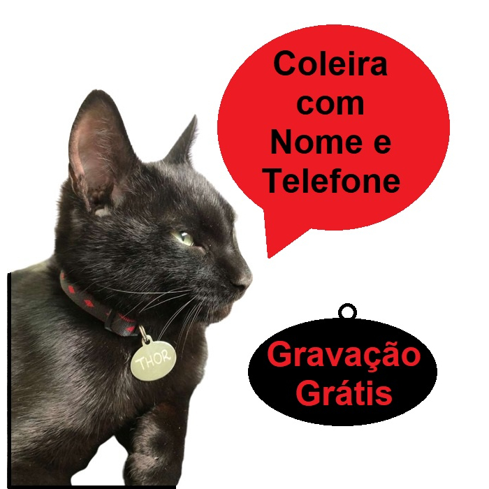 Coleira Para Gatos Com Plaquinha De Identificação Com Nome e Telefone