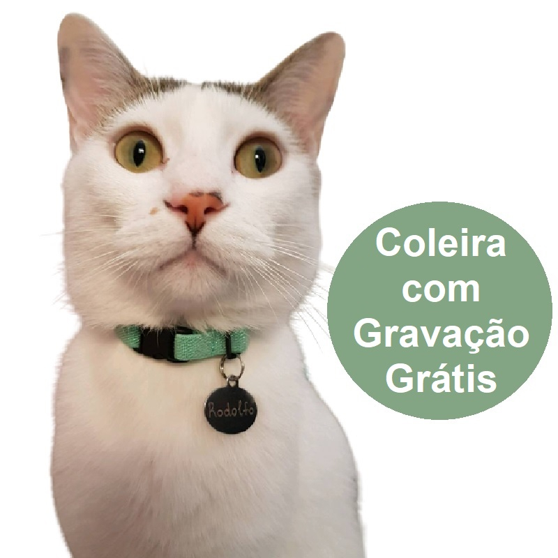 Coleira com Plaquinha de Identificação GRAVADA para gatos
