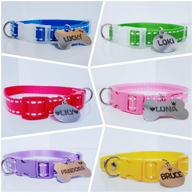 Coleira com Placa de Identificação Personalizada para Cães e Gatos – Gravação Livre