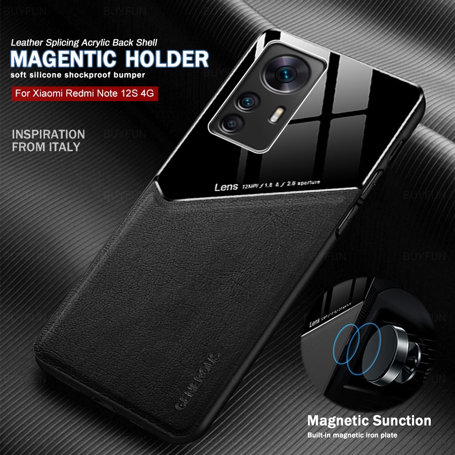 Redmy Note12s 4G Capa Magnética De Luxo Placa PU Traseira De Couro Para Redmi Note 12S 12 S 4G TPU Soft Frame Protect Fundas