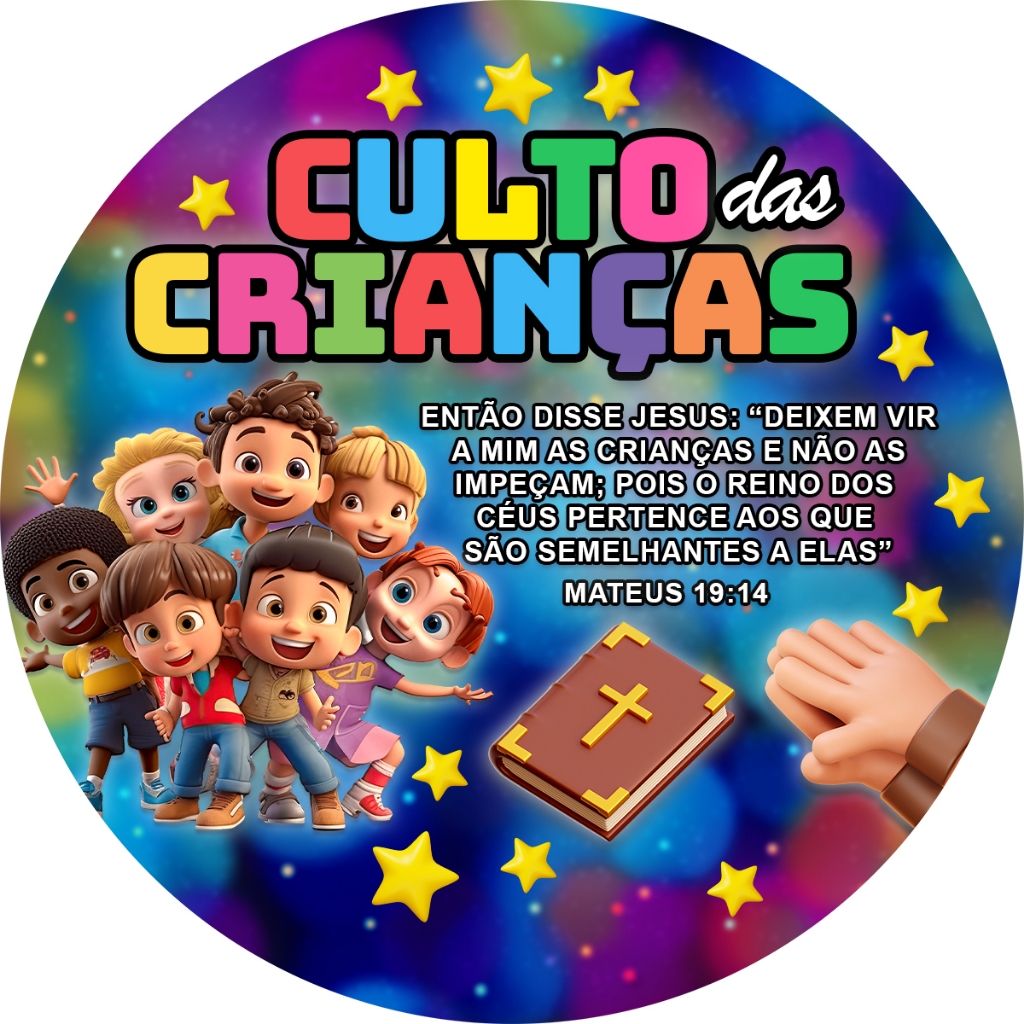 Painel Redondo de Festa Em Tecido Sublimado 1,50m 3D Veste Fácil Culto das Crianças SRD-264