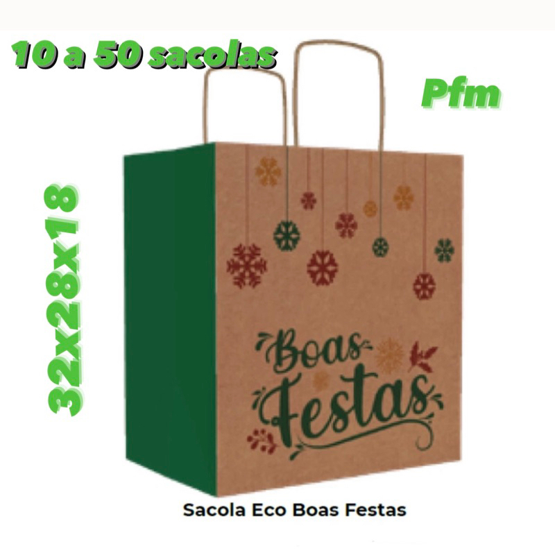 Sacola para Presente / Kraft Estampa Natal ou Pascoa - Kit 10 Unidades 32 x 23 x 10 - Alta Qualidade