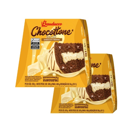 Panettone Chocolate Recheio e Cobertura Chocolate Branco Bauducco Chocottone 450g