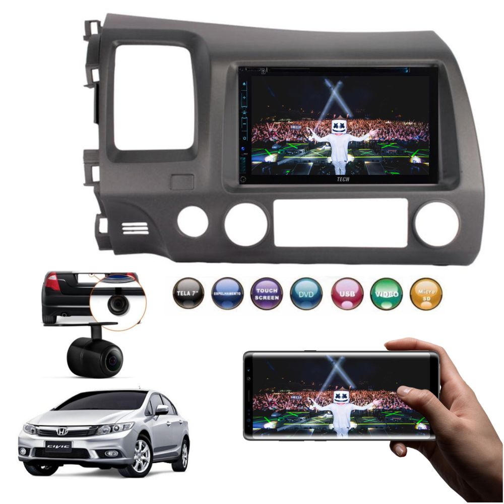 Kit Multimídia Mp5 2 Din New Civic 2007 2008 2009 2010 2011 7 Pol Bluetooth Espelhamento Moldura Grafite Camera Re