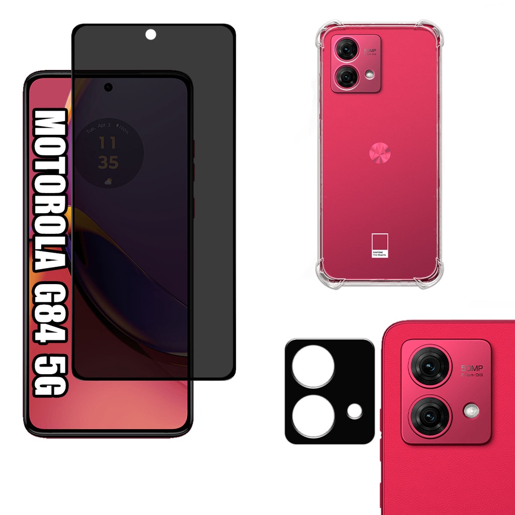 KIT Para Motorola Moto G84 5G | Película de Privacidade 3D - Capa Capinha Anti Impacto - Película da Câmera 3D