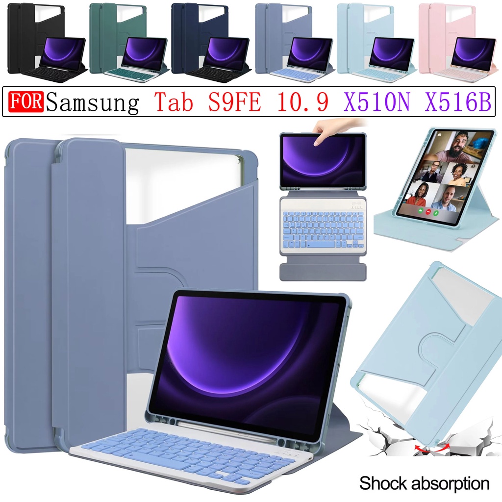 Para Samsung Galaxy Tab S9 FE 10,9 Polegadas SM-X510 X516 2023 Transparente 360 ° Capa Traseira Do Teclado Acrílica Ultra-Fina Sem Fio Rotativa