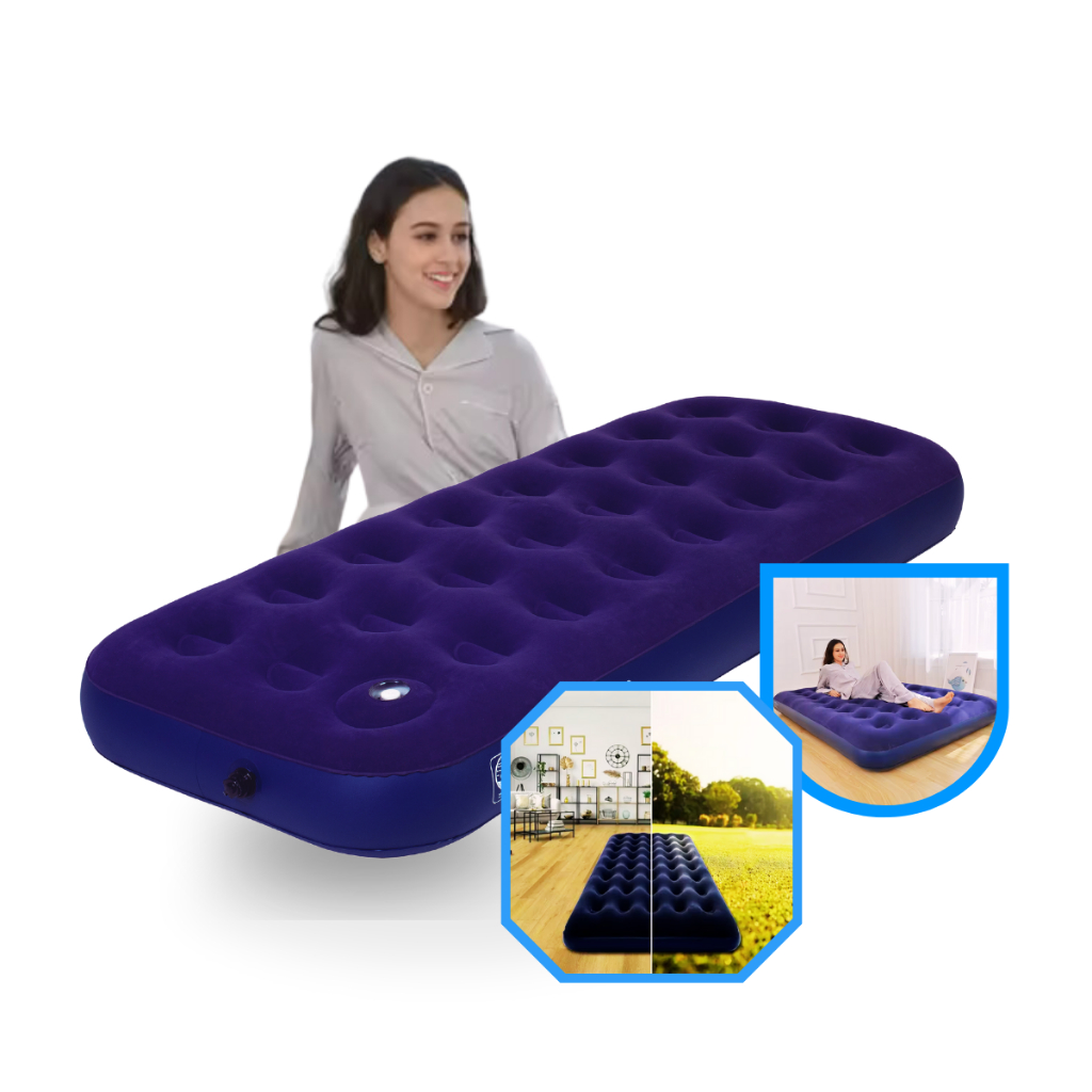 Colchão Inflável Solteiro com Inflador Embutido Kit Reparo Vávula Esvaziamento Rápido Confortável Multiuso Camping Praia Viagem Piscina Visitas MOR