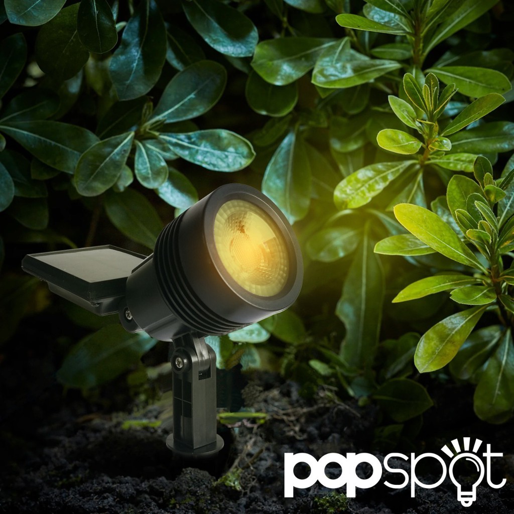 Luminária Spot Solar Espeto de Jardim Potente 12h Refletor Luz Verde Branco Quente 3000K LED 1 Ano Garantia PopSpot