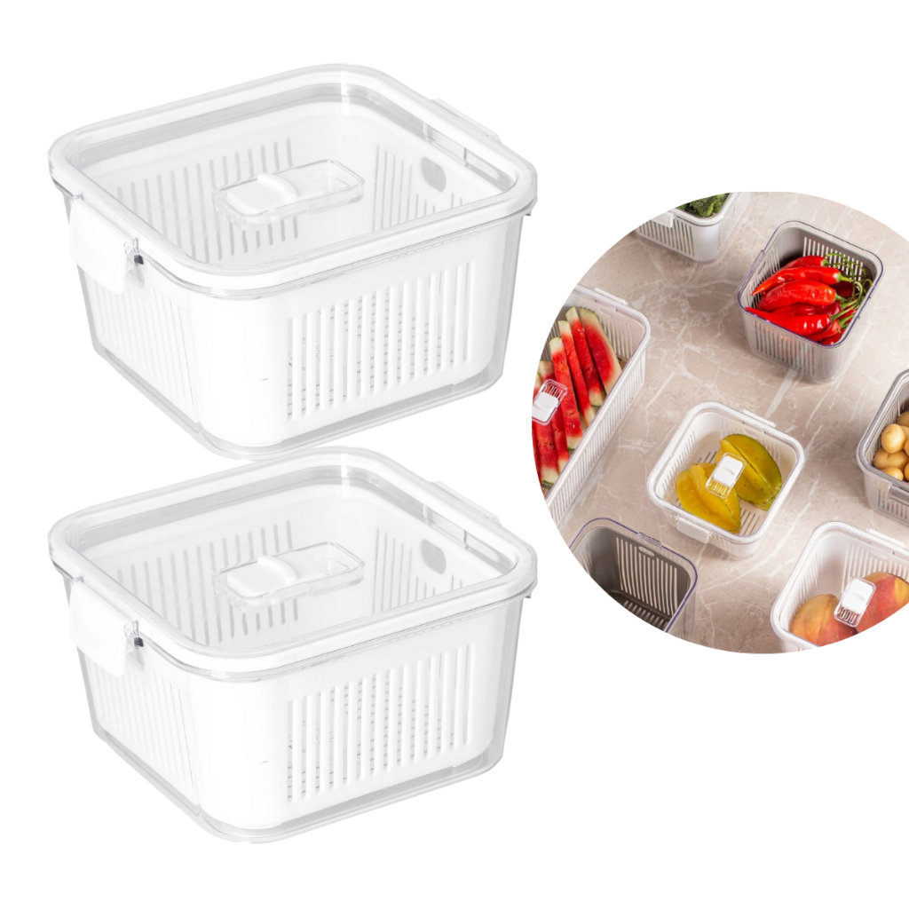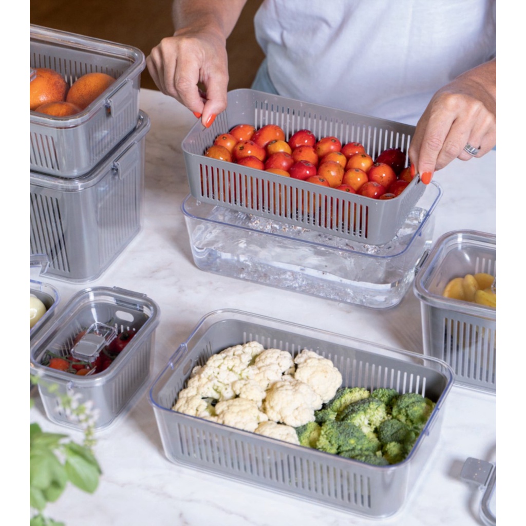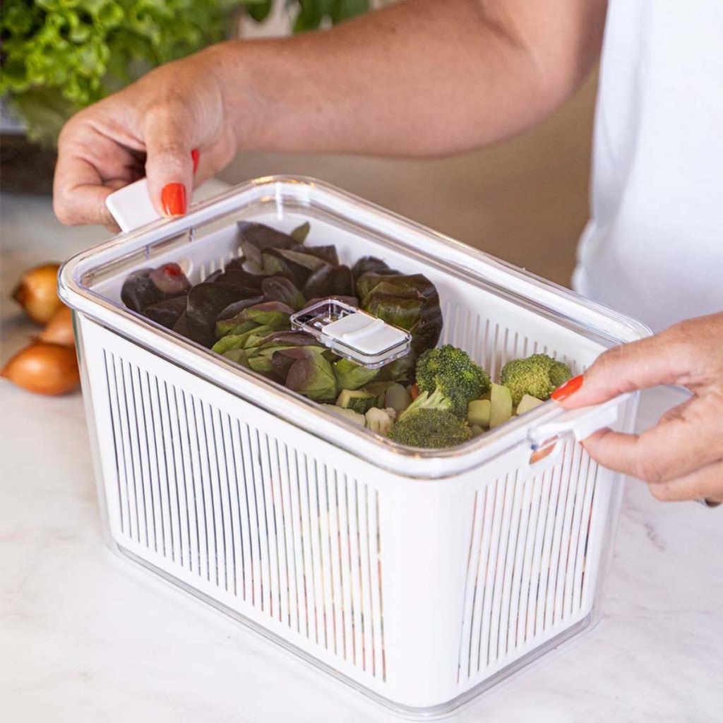 Pote Slim Hermético Multiuso 1.360ml COm Cesto Escorredor Paramount Para Guardar Alimentos Geladeira Cozinha Evita Contato do Alimento com Água Acrílico Porta Mantimento Livre de BPA Frutas Verduras Legumes