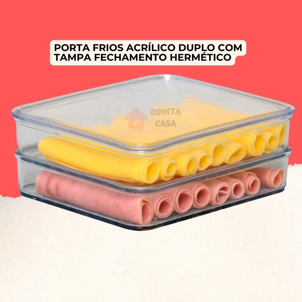 Kit 2 Porta Frios Pote Hermético 770ml Presunto Queijo Mantimentos Organizador de Geladeira Acrilico