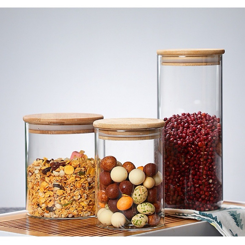 Pote de Vidro Hermético com Tampa de Bambu Porta Alimentos Mantimentos Biscoitos