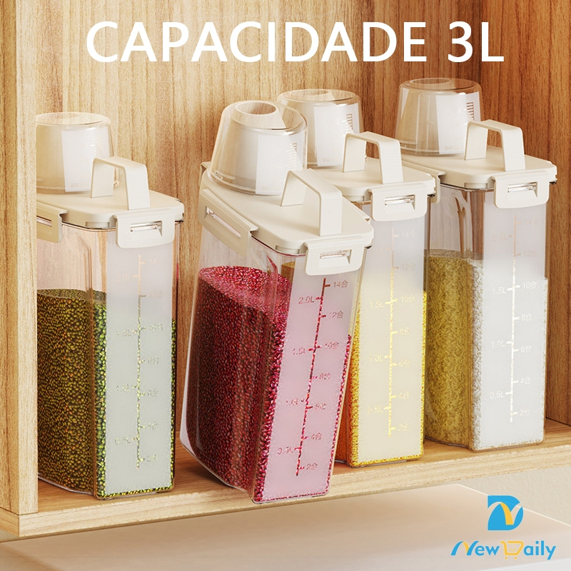 Dispenser para Alimentos 3L grãos cereais Tampa com trava pote hermético Copo Medidor para Armazenamento de Mantimentos Multiuso BC-11/BC-12/BC-13