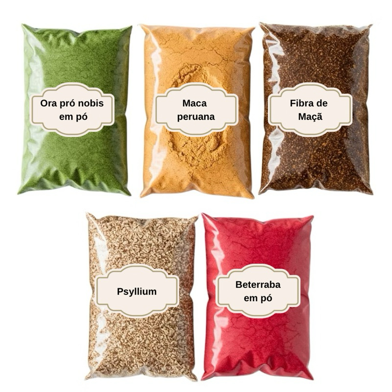 Kit Farinha da Felicidade da Mulher Psyllium, Maca Peruana, Fibra de Maça, Ora-Pró-Nobis, Beterraba