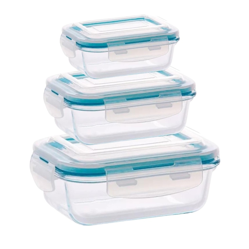 Kit Potes De Vidro Retangular Herméticos 370ml 640ml 1040ml