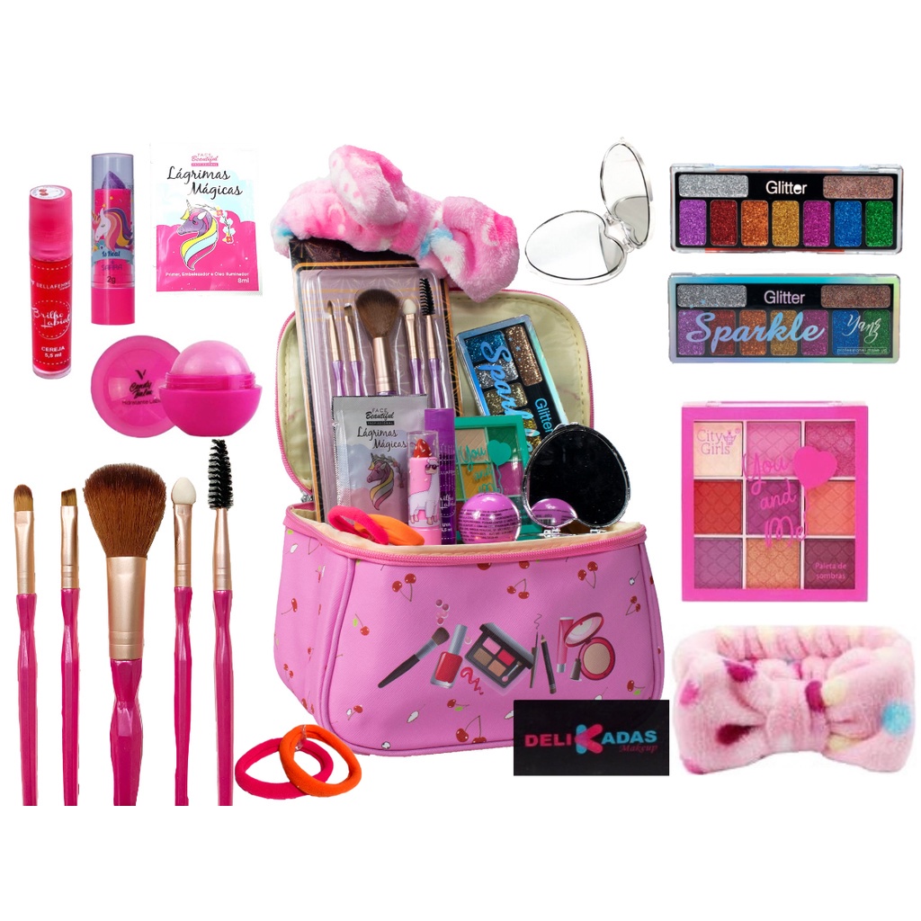 Kit De Maquiagem Infantil + Maleta + Bolsinha Infantil Linda