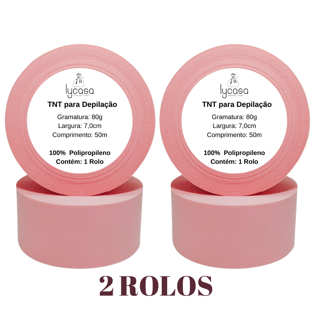 KIT TNT para Depilação ENVIO EM 24H Com 2 Rolos de 50 Metros Cada Cor Rosa Gramatura 80 e 7cm de Largura Lenço Papel Depilatório Descartável Nacional Profissional