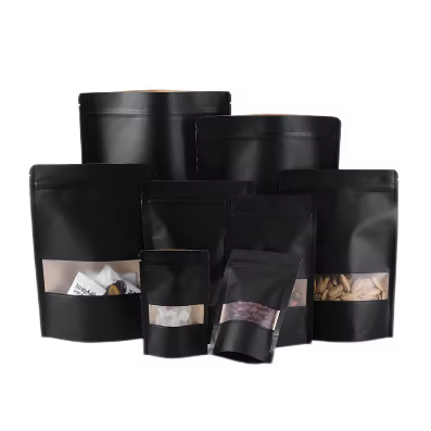 Kit Saco Saquinho Stand Up Pouch C/ Visor Zip Preto Laminado Brilho C/50 Unid P/ Alimento Hermético