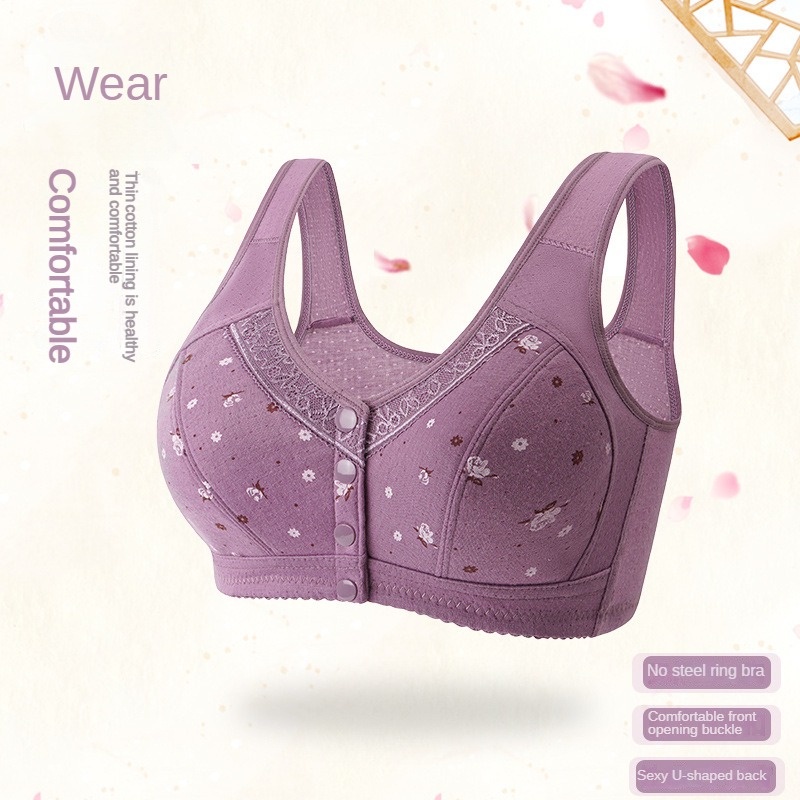 Nova Roupa Íntima Com Fivela Frontal Para Sutiãs Femininos De Algodão Macio De Meia-Idade E Idosos , Puro De Tamanho Grande Sem Anel De Aço , Tamanhos 38-50