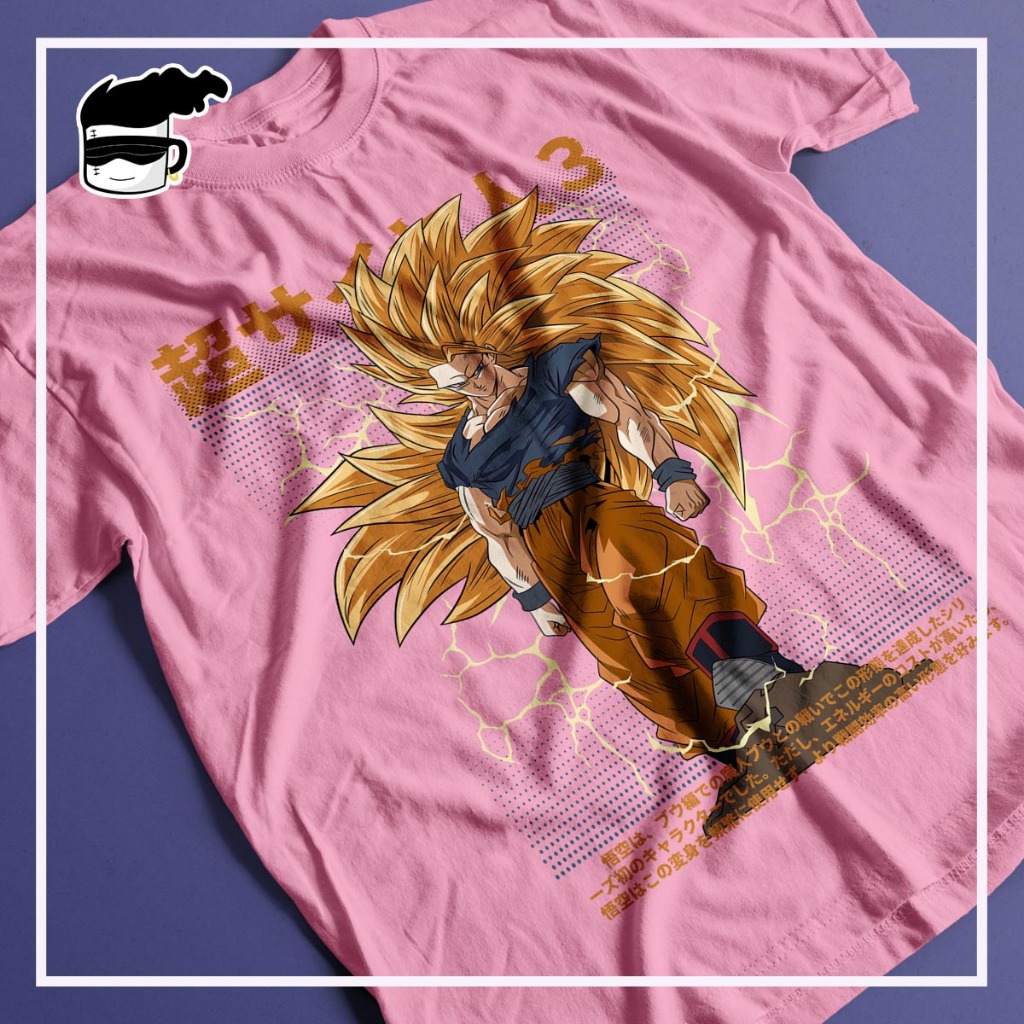 Camiseta Dragon Ball Super Goku SS3 Unissex Camisa Anime Rosa
