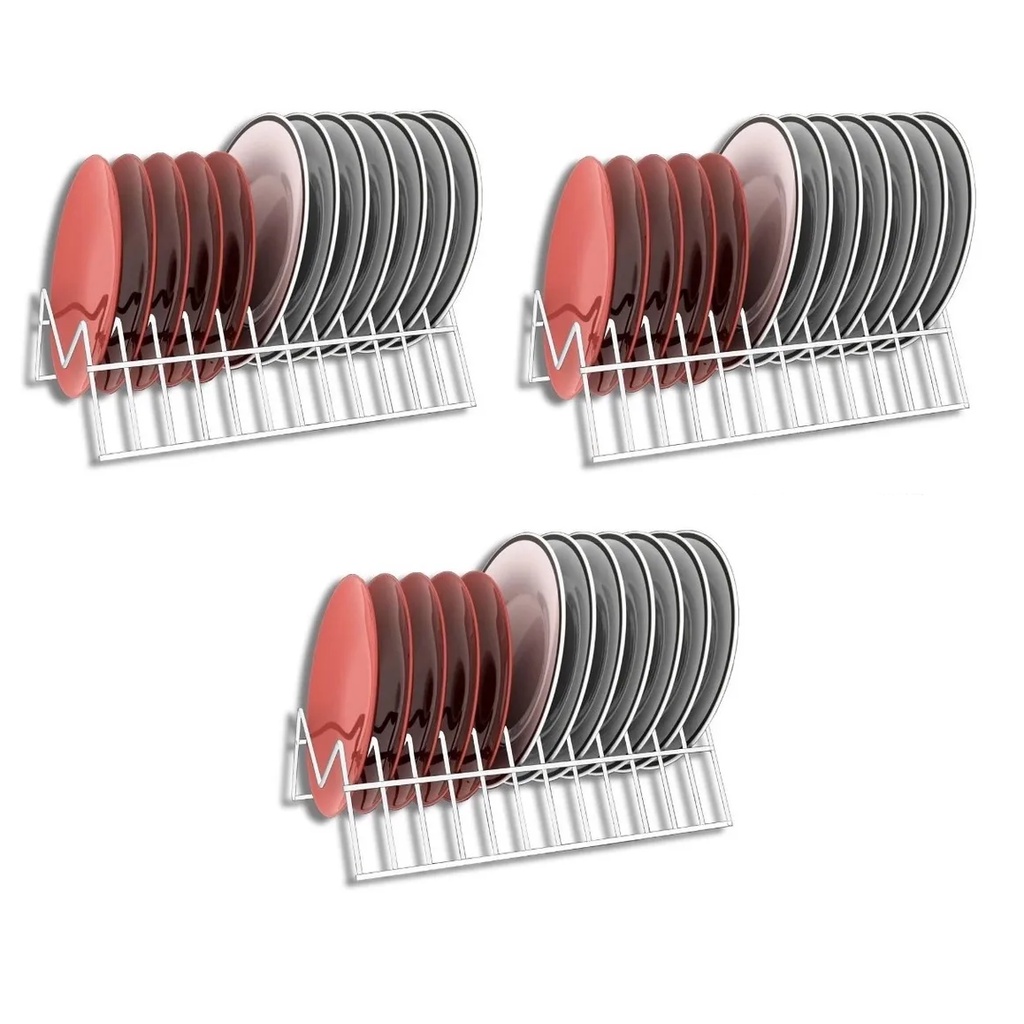 Kit 3 Organizador De Pratos Armário Cozinha Aço Reforçado Vertical