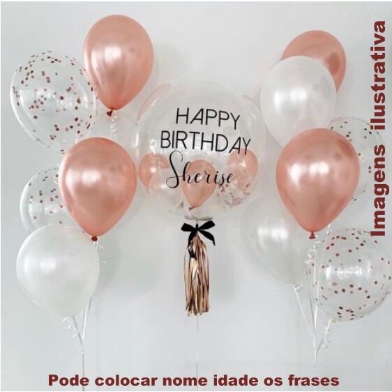 kit buquê de Balões e Balão Bubble 24 pl personalizado