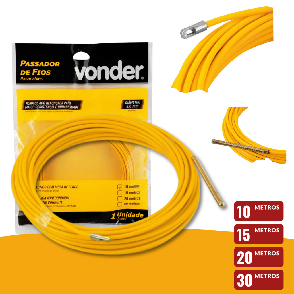 Passador de fios Sonda Para Cabos Elétricos Vonder 15m 20m 30m Com Alma de Aço