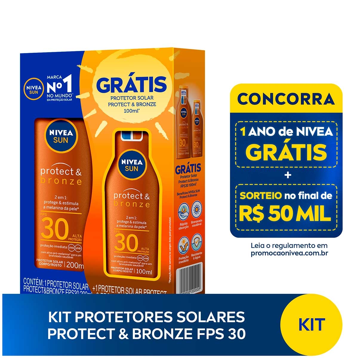 Kit Protetor Solar Nivea Sun Protect&Bronze FPS30 com 200ml + 100ml