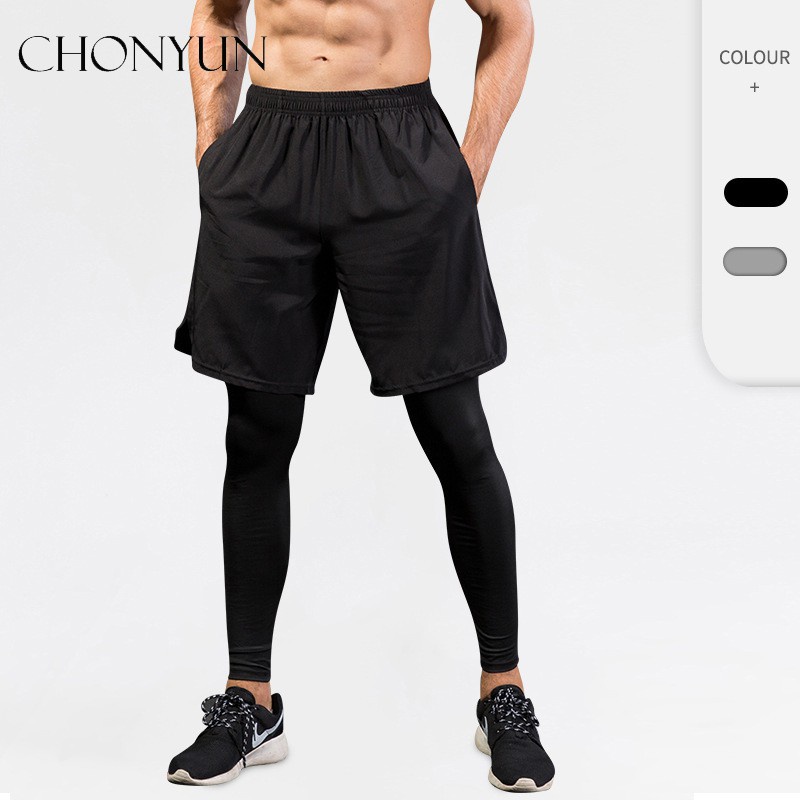 Calças de moletom masculinas de compressão 2 em 1 leggings de alta elasticidade