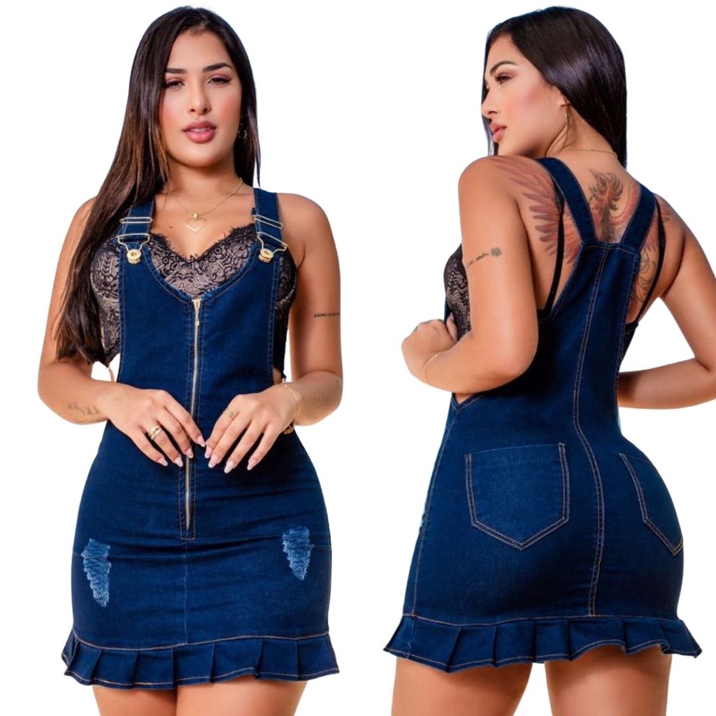 Jardineira Jeans Feminina Saia Com Detalhe De Babado