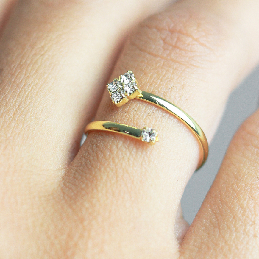 Anel Feminino Ajustável com Pedras de Strass nas Pontas Folheado a Ouro ou Prata